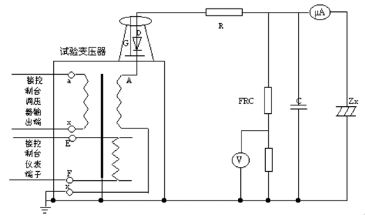 在试验变压器中:a、x为低压输入端;A、X 为高压输出端;E、F为仪表测量端。