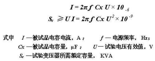 其高压侧额定电压应不小于被试品的zui高试验电压,额定电流不小于被试品的zui大电容电流。被试品的电容电流和变压器所需容量计算式为: