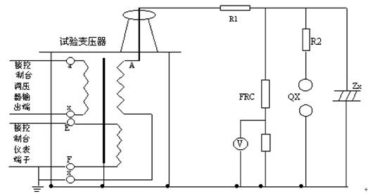 R1、R2- 限流电阻; Qx- 放电球隙; Zx- 被试品;